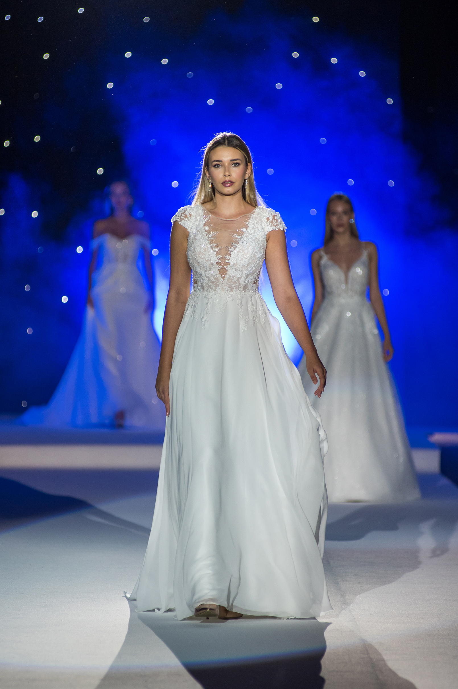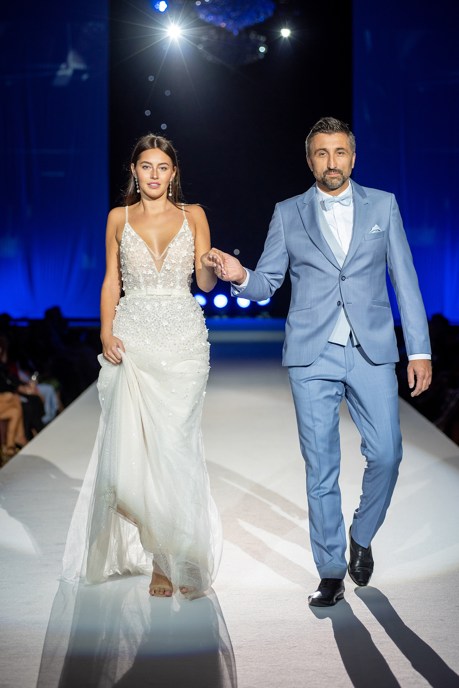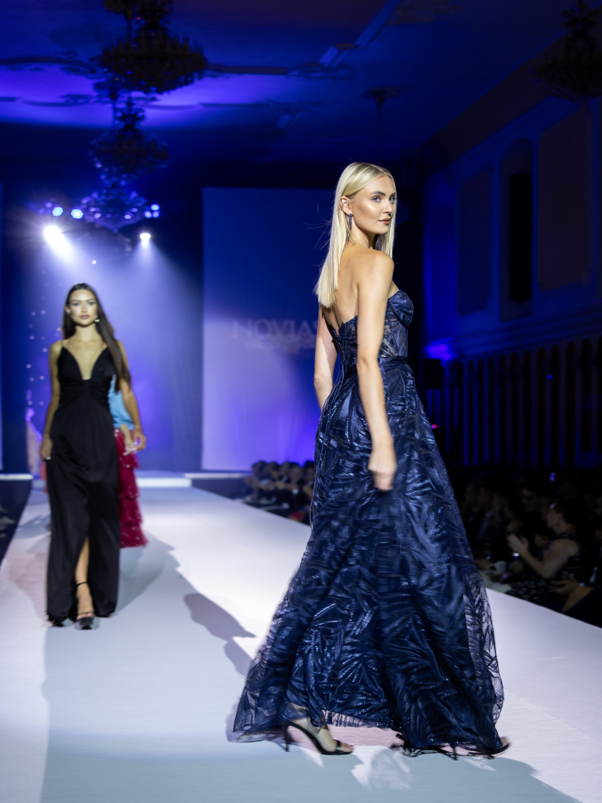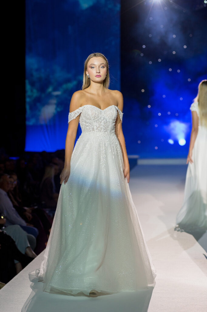 Přehlídka byla kombinací moderních střihů s nadčasovou elegancí, které jsou pro náš svatební dům Novias typické. Modely prestižní značky Rosa Clará zahrnovaly svatební šaty s jemnými krajkami a třpytivými detaily, které okamžitě upoutaly pozornost diváků. Nechyběla ani krása jednoduchého, elegantního pánského obleku Wilvorst v jemně modré barvě. Kolekce společenských šatů přinesla na molo glamour a styl, představující modely od značek Tarik Ediz, Christian Koehlert a Marfil Barcelona.