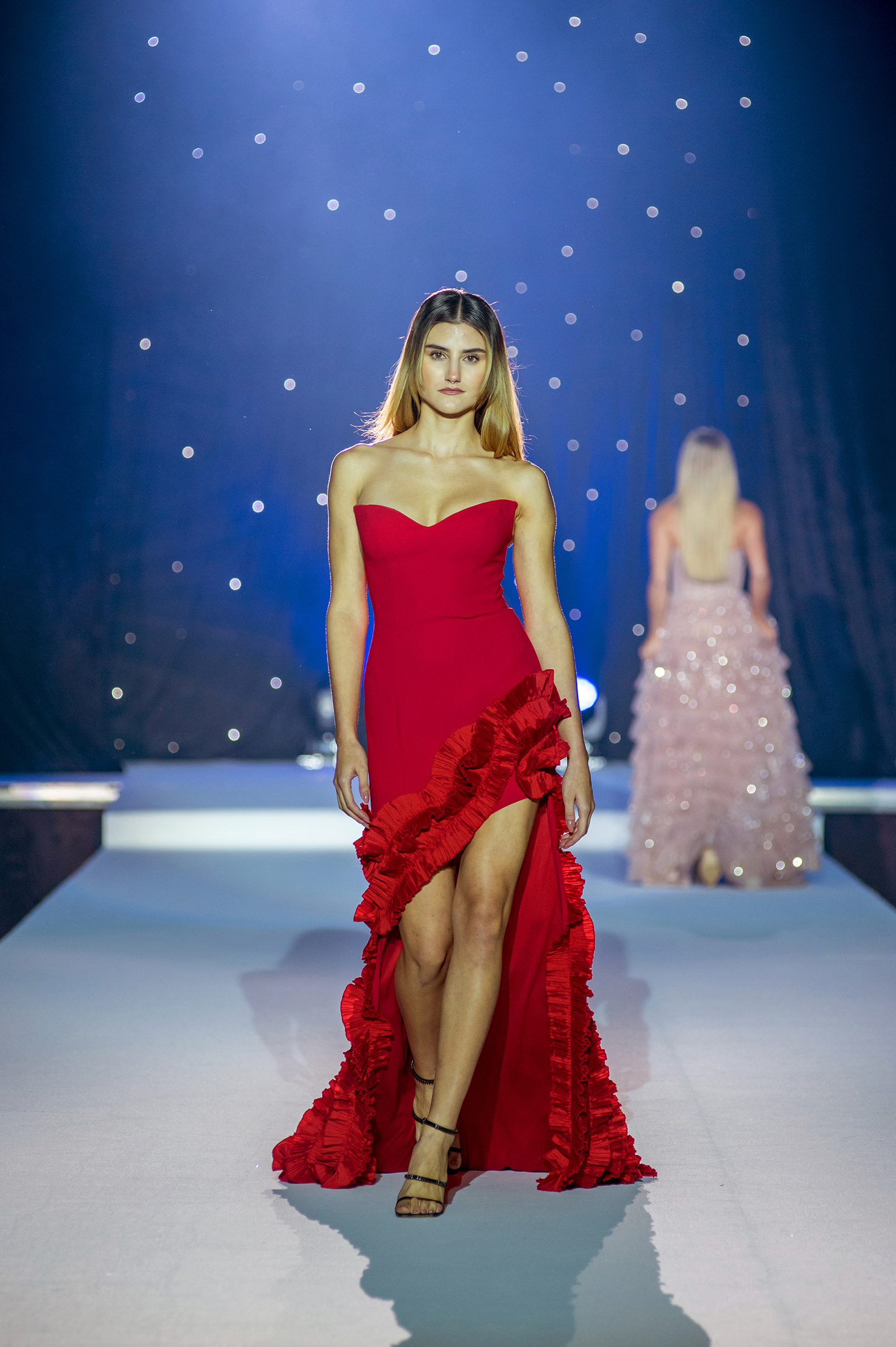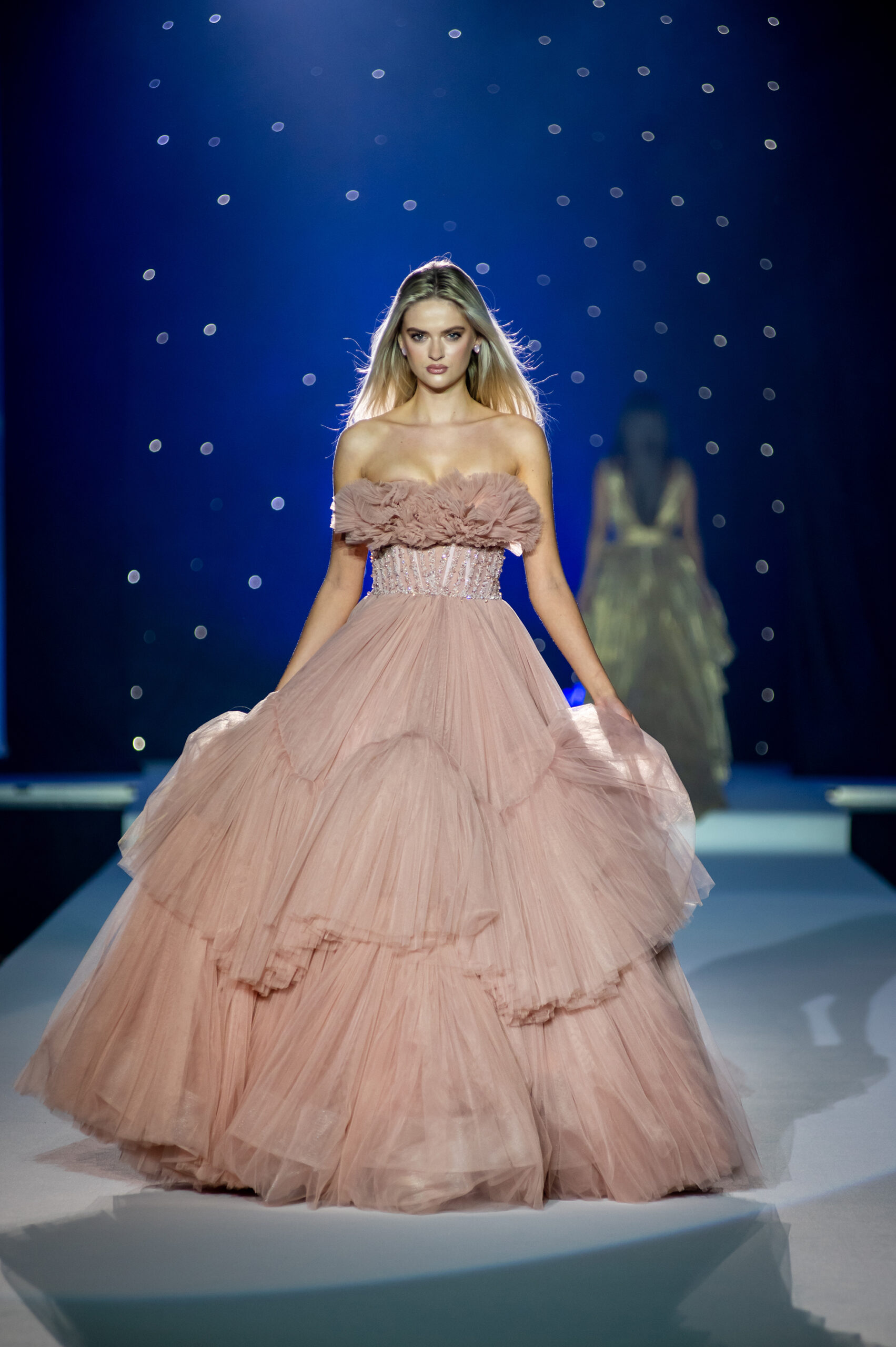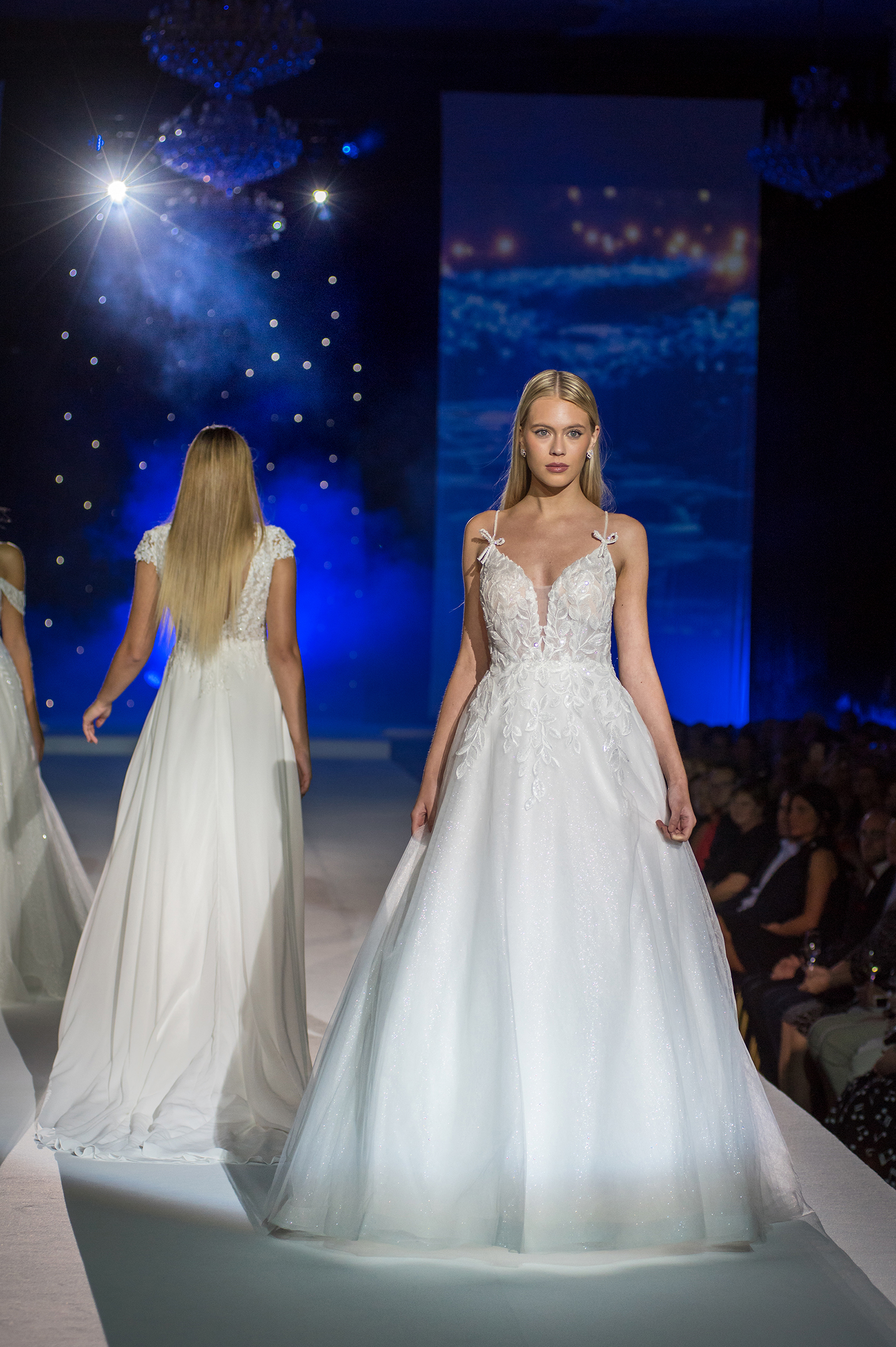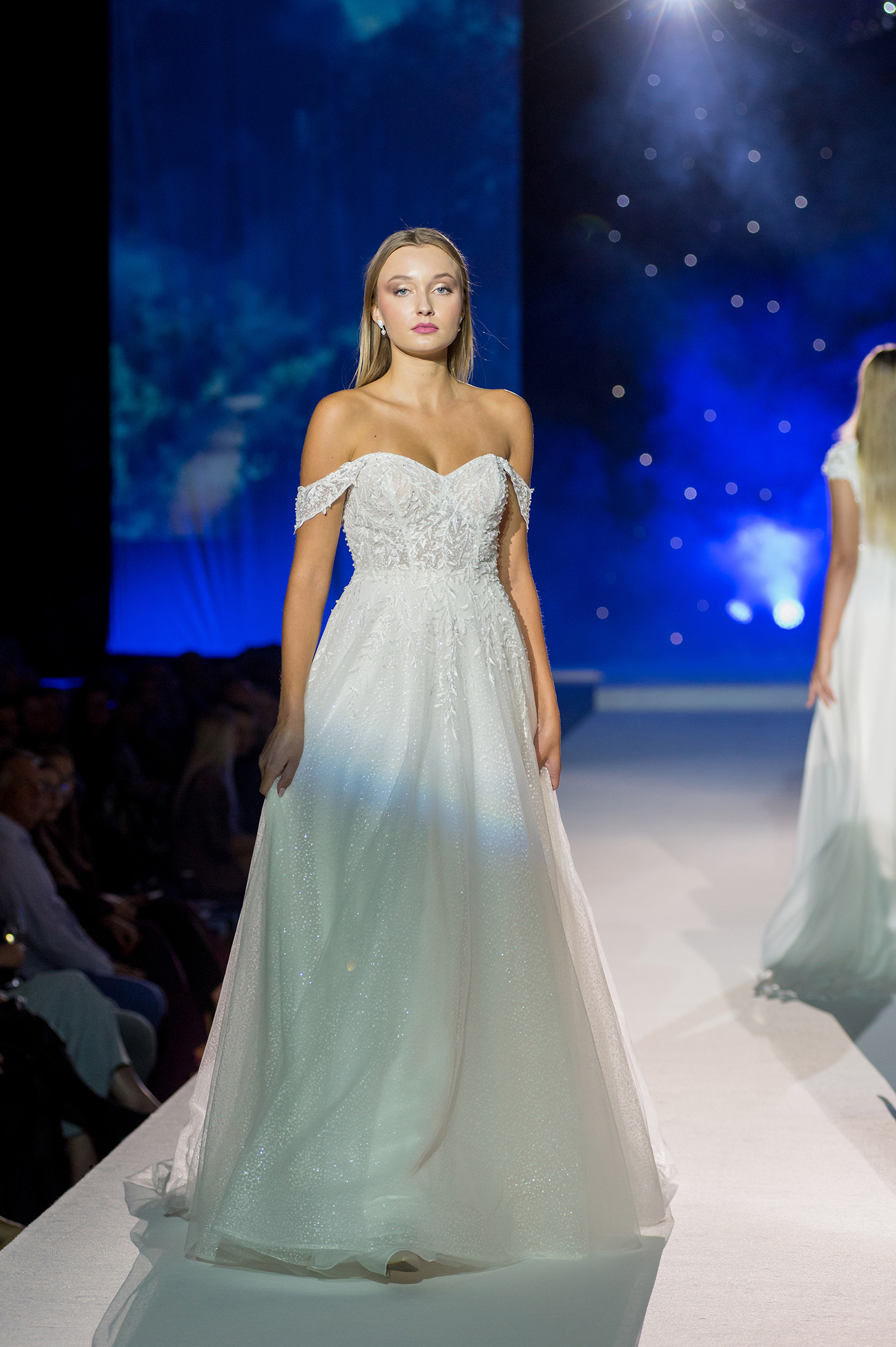 Přehlídka byla kombinací moderních střihů s nadčasovou elegancí, které jsou pro náš svatební dům Novias typické. Modely prestižní značky Rosa Clará zahrnovaly svatební šaty s jemnými krajkami a třpytivými detaily, které okamžitě upoutaly pozornost diváků. Nechyběla ani krása jednoduchého, elegantního pánského obleku Wilvorst v jemně modré barvě. Kolekce společenských šatů přinesla na molo glamour a styl, představující modely od značek Tarik Ediz, Christian Koehlert a Marfil Barcelona.