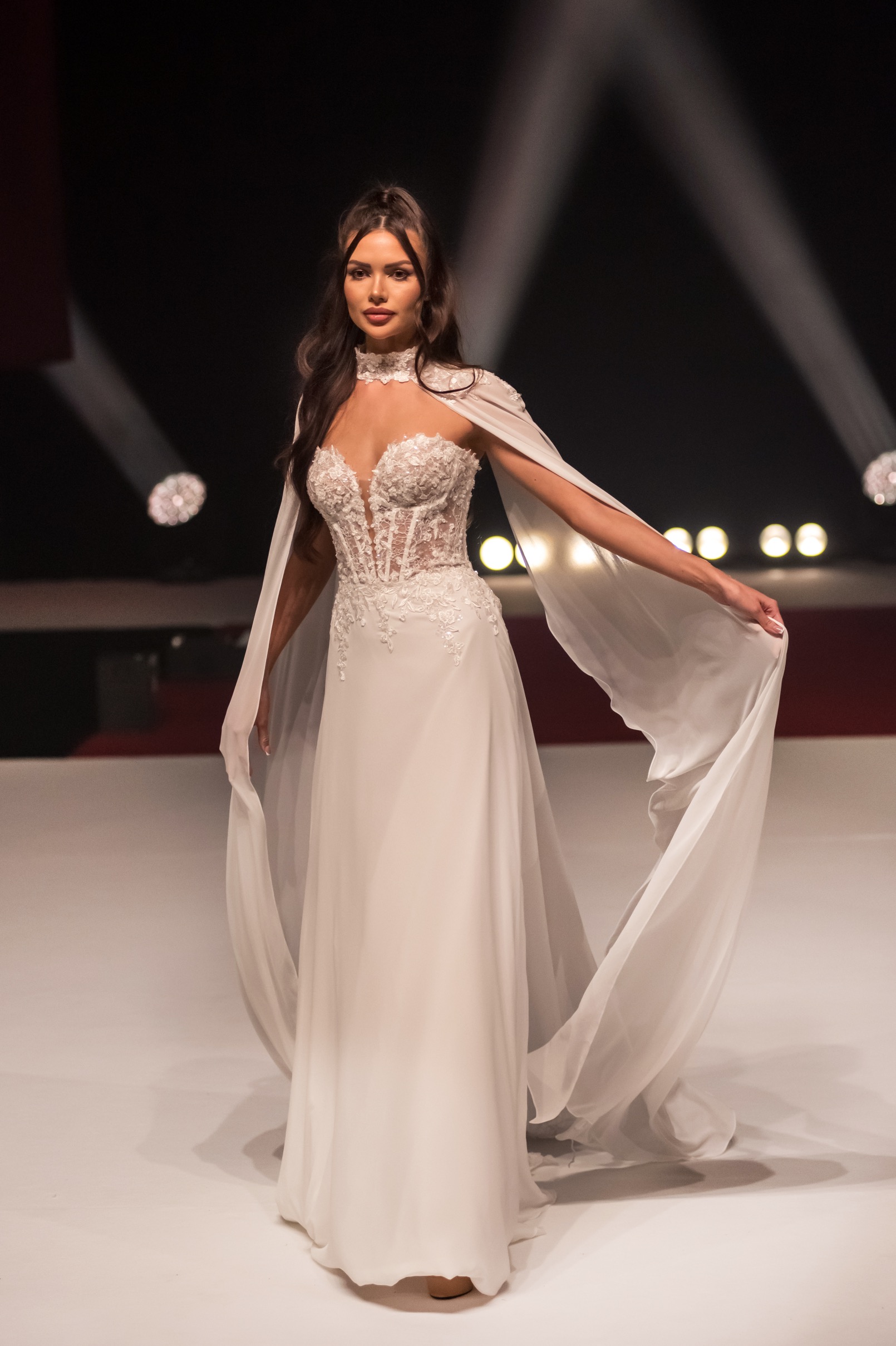 Naše přehlídka byla zaměřena na kolekci společenských a svatebních šatů pro sezónu 2026, kterou jsme s hrdostí a radostí odhalili před zaplněným sálem. Nechyběly jemné krajky, výrazné siluety ani moderní střihy, které spojují eleganci s osobitým stylem každé nevěsty i dámy. A to nejzásadnější? Exkluzivně jsme představili novou značku svatebních šatů – ALBERTO PALATCHI, jejíž jméno je synonymem pro sofistikovanost, kvalitu a španělský šarm. Věříme, že si tato značka najde své místo v srdcích mnoha budoucích nevěst i na české módní scéně.