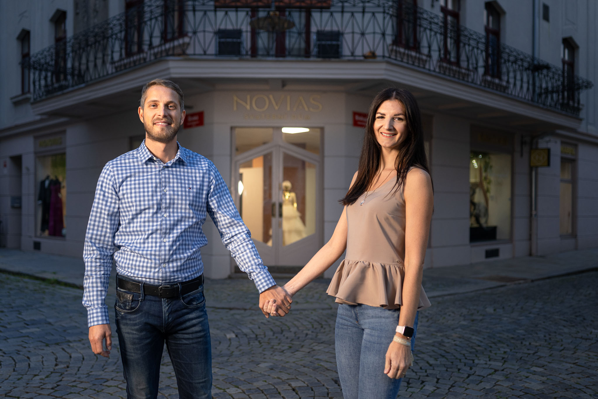 Populární svatební dům na rohu Biskupské a Široké ulice v centru Českých Budějovic má už jeden rok nové majitele, jsou to manželé Lucie a Jiří Grillovi. Na místo, které zná prakticky každý, kdo někdy sháněl šaty nebo oblek na svatbu i ples, se přitom dostali velmi nečekaně. „Přišlo to jako rána z čistého nebe,“ vypráví usměvavá Lucie Grillová.